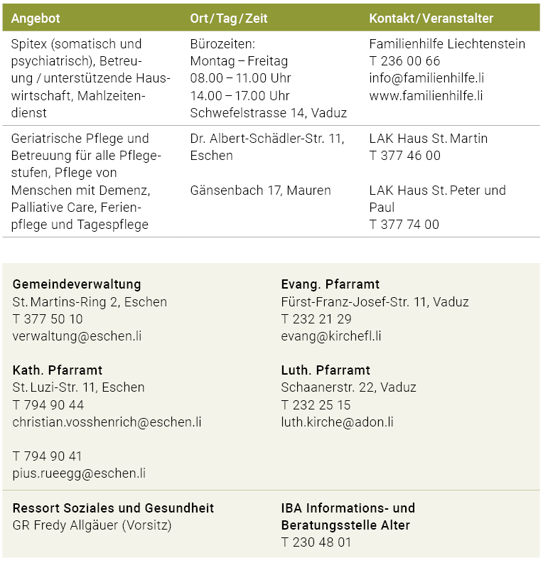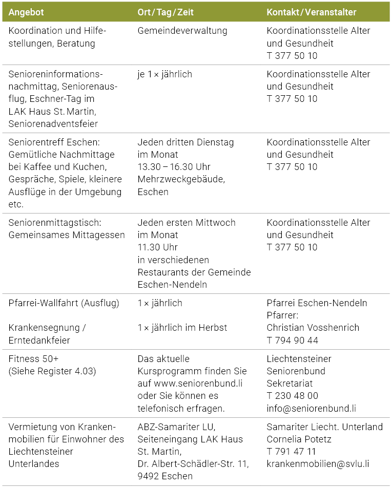 Angebote in der Gemeinde Eschen