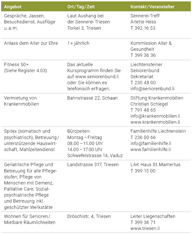 Angebote in der Gemeinde Triesen